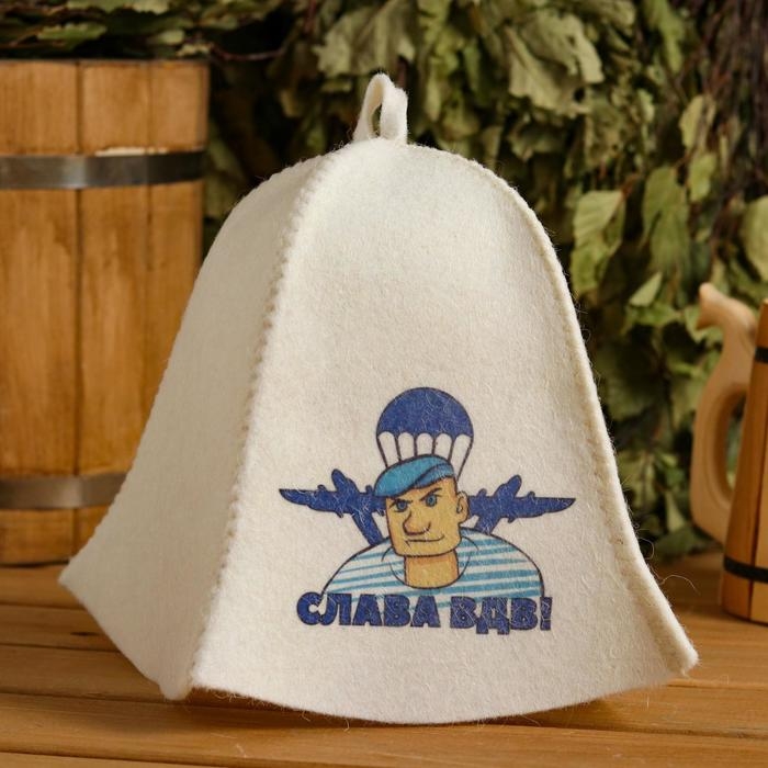 Шапка для бани "Слава ВДВ" с принтом, белая