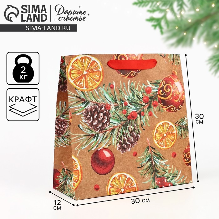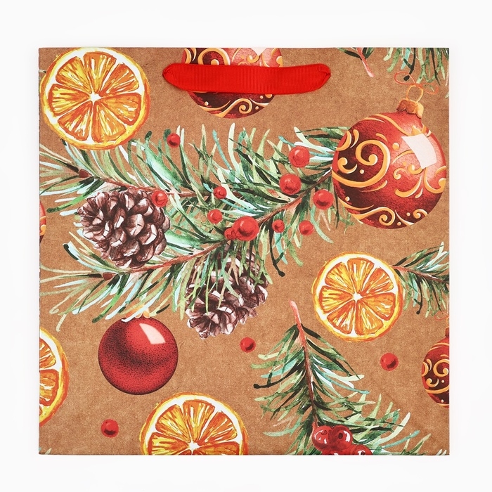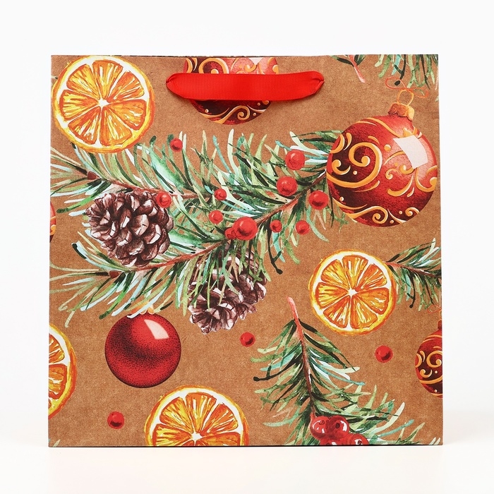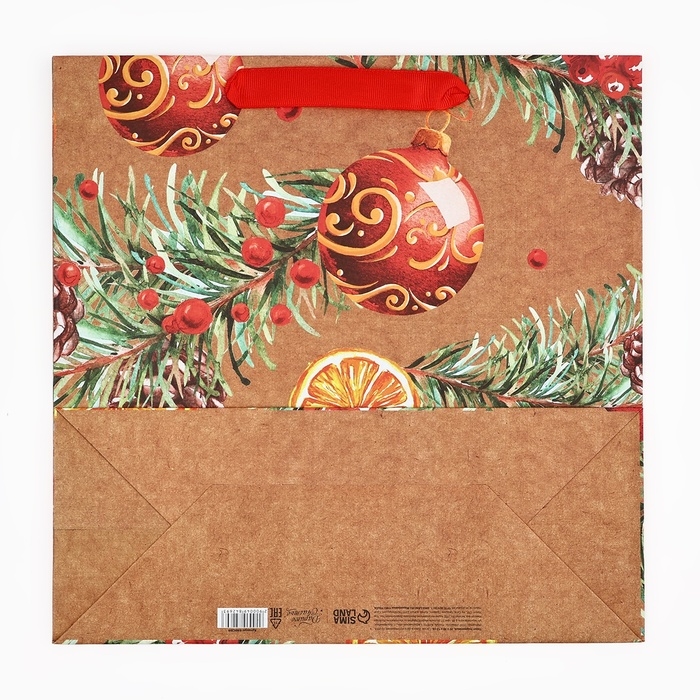 Пакет подарочный новогодний крафтовый квадратный «Новогоднее настроение», 30 х 30 х 12 см, Новый год