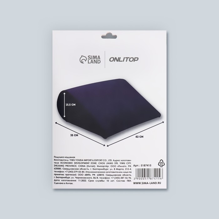 Подушка надувная, 40 × 30 × 45 см, в чехле, цвет серый