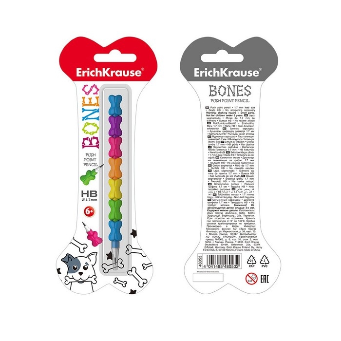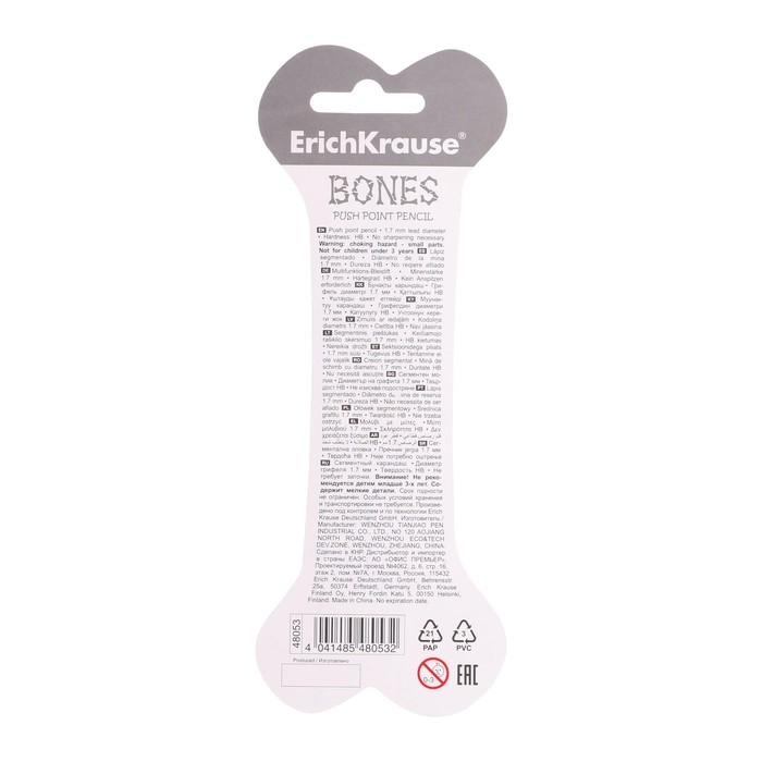Карандаш сегментный ErichKrause "Bones", НВ, грифель d=1,7 мм, в блистере