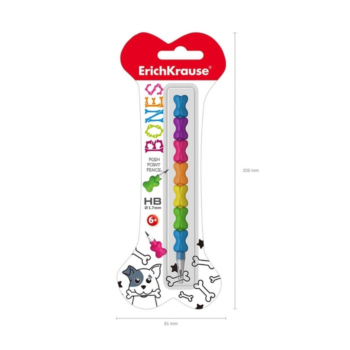 Сегментный карандаш, не требующий заточки. Корпус состоит из сегментов в форме косточек. Твердость HB. Диаметр грифеля 1.7 мм. 7 сегментов.