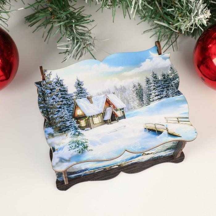 Новый год. Шкатулка средняя новогодняя "Дом на опушке", 14х11,7х7,5 см