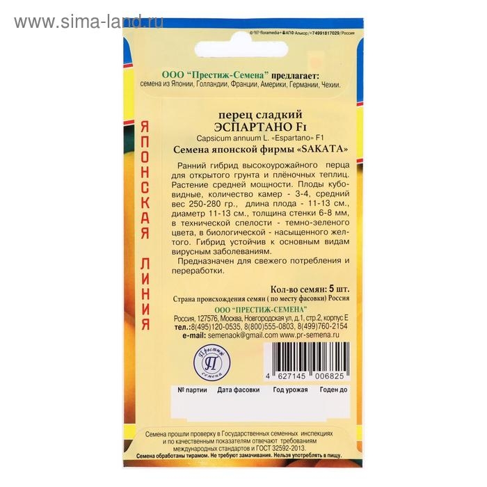 Семена Перец сладкий "Эспартано" F1, 5 шт