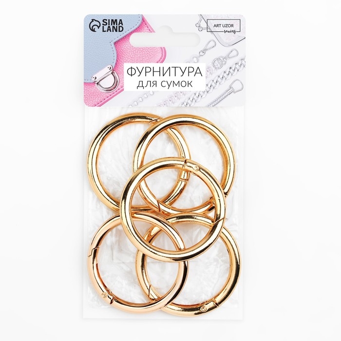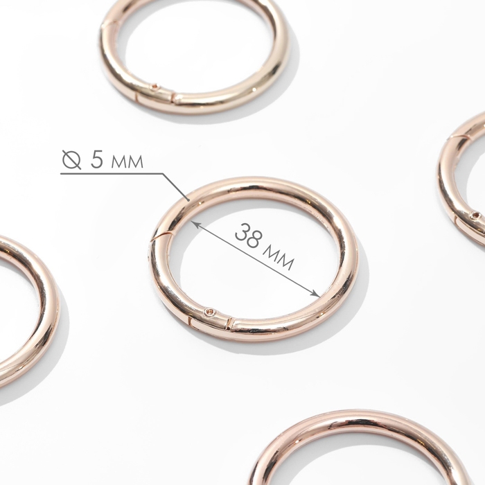 Кольцо-карабин, d = 38/48 мм, толщина - 5 мм, 5 шт, цвет золотой