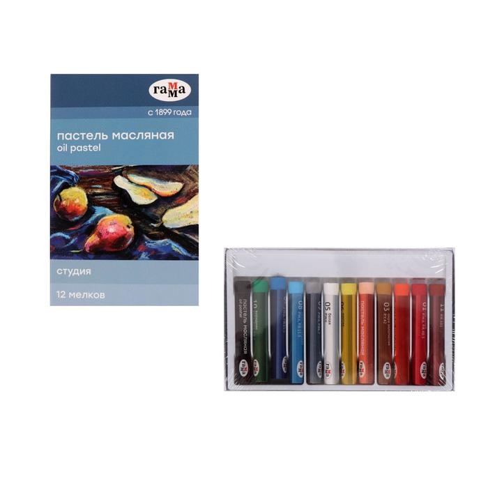 Пастель масляная, набор 12 цветов, Гамма "Студия", d-8мм, l-65мм, в картонной коробке