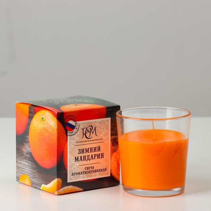 Свеча ароматическая в стакане "Зимний мандарин", подарочная упаковка, 8х8,5 см, 30 ч
