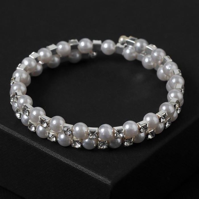 Браслет-пружинка «Жемчужинка морская» 3 ряда, цвет белый в серебре, L=7 см
