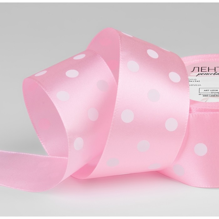 Лента атласная «Горошек», 40 мм × 23 ± 1 м, цвет розовый №004