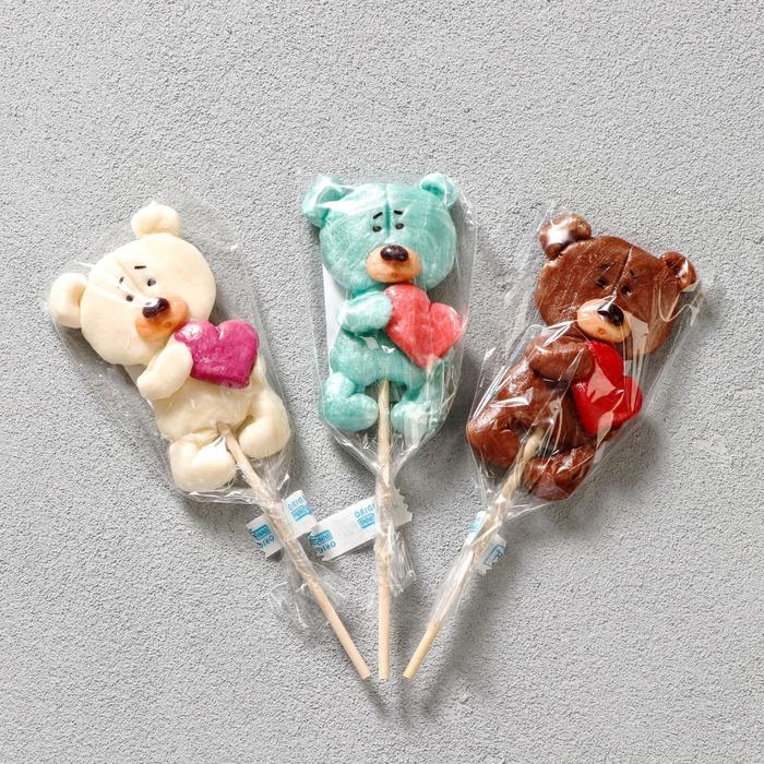 Леденец ручной работы «Мишка с сердцем» 30 г, микс