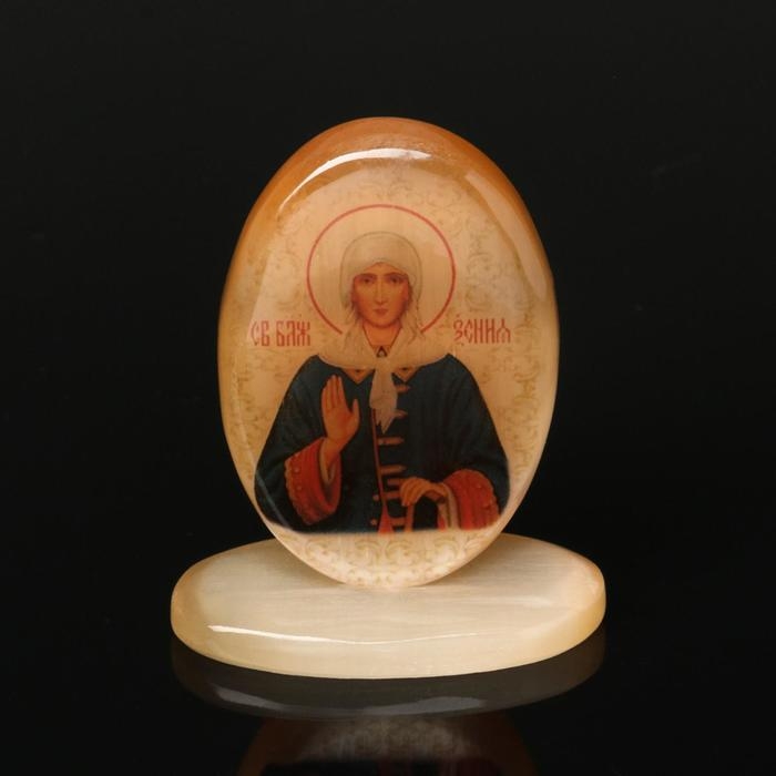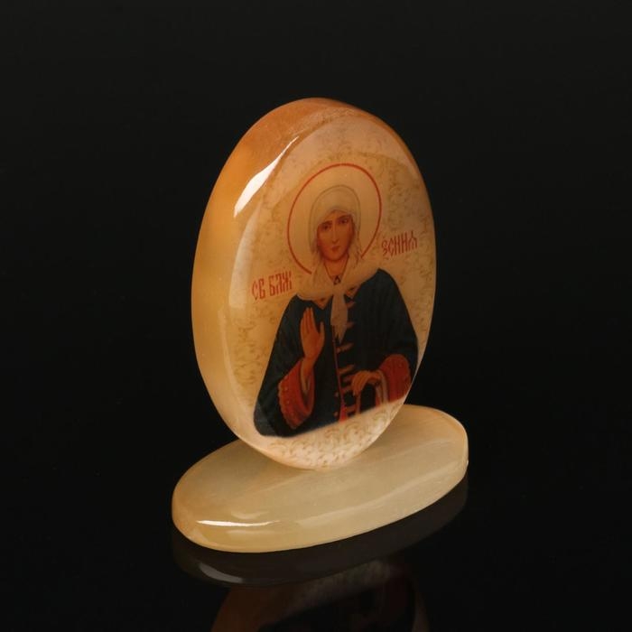 Икона овал на поставке с фоном"Св.Ксения Петербургская", селенит