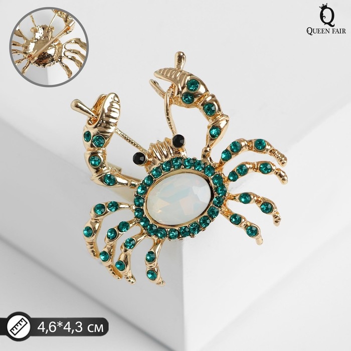 Брошь «Крабик», цвет бело-зелёный в золоте