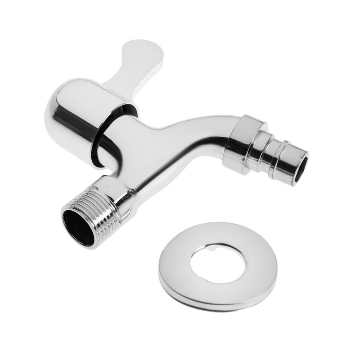 Кран водоразборный со штуцером ZEIN, 1/2", плоская ручка, цинк, кран-букса, хром
