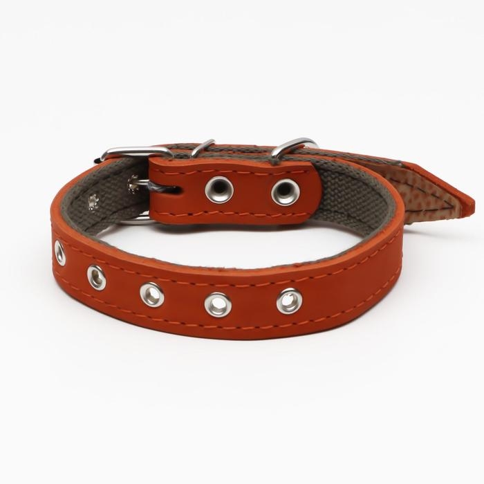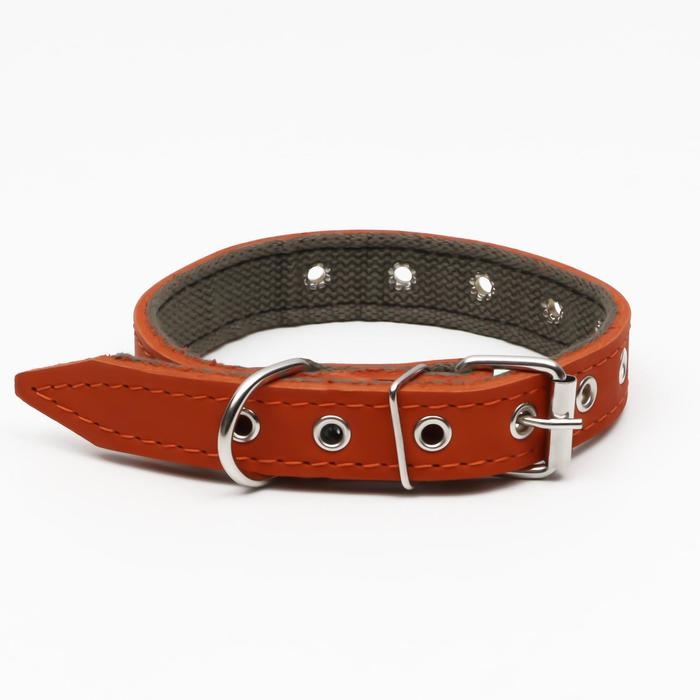 Ошейник комбинированный кожа/брезент, безразмерный, 54 х 2.5 см, ОШ 17-45 см, рыжий