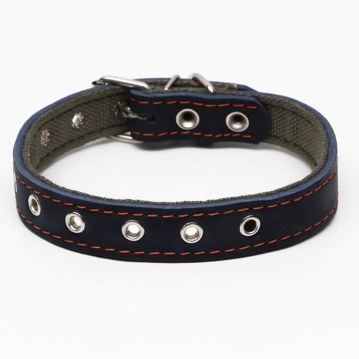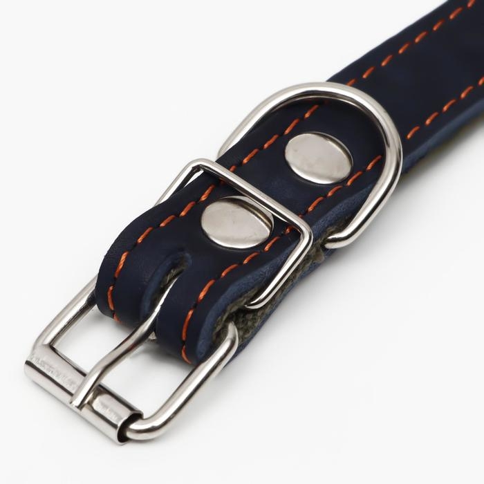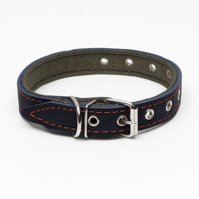 Ошейник комбинированный кожа/брезент, безразмерный, 54 х 2.5 см, ОШ 17-45 см, синий
