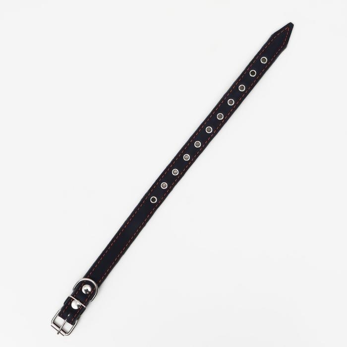 Ошейник кожаный однослойный, безразмерный, 56 х 2.5 см, ОШ 17-44 см, чёрный