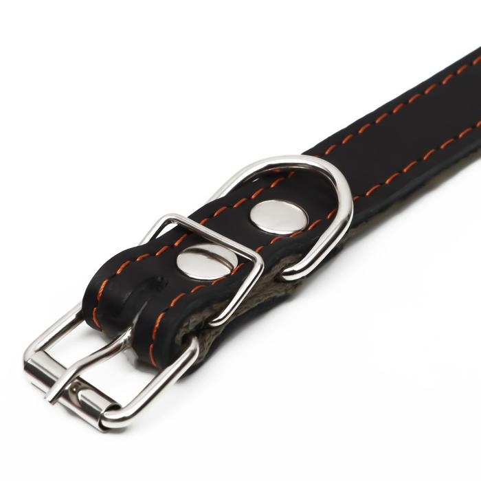 Ошейник кожаный однослойный, безразмерный, 56 х 2.5 см, ОШ 17-44 см, чёрный