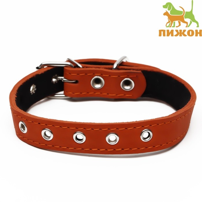 Ошейник кожаный на синтепоне, безразмерный, 54 х 2,5 см, ОШ 19-47 см, оранжевый