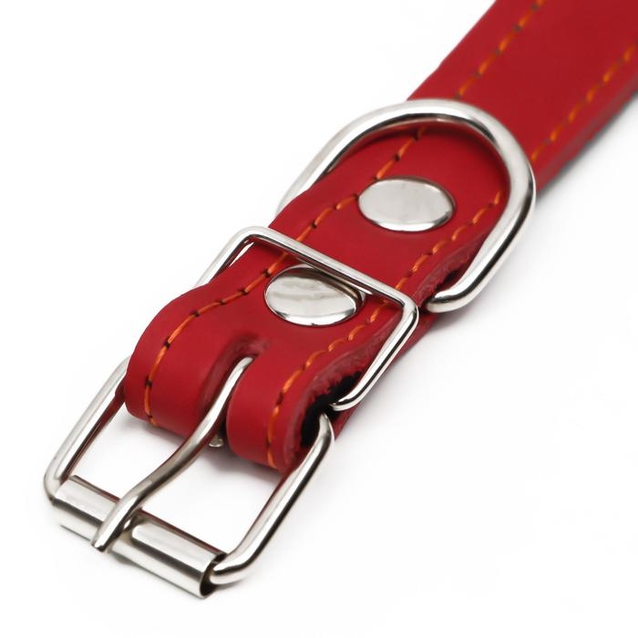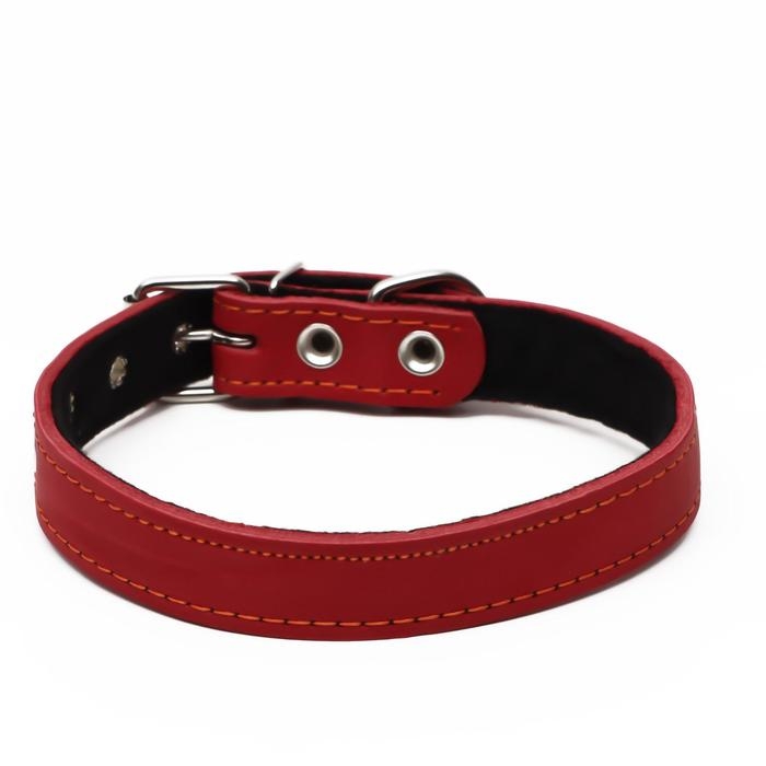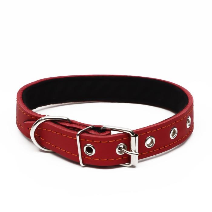 Ошейник кожаный на синтепоне, 56 х 2.5 см, ОШ 35-45 см, красный