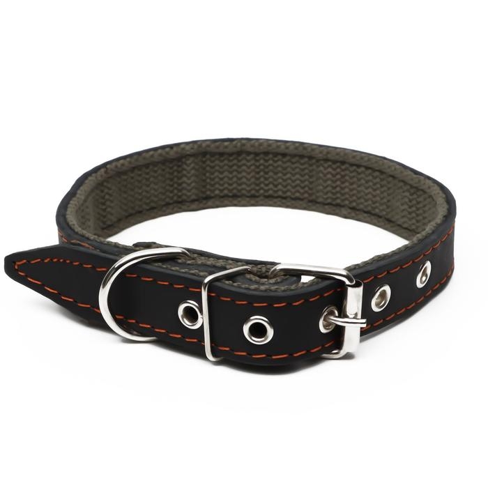 Ошейник комбинированный кожа/брезент, 53 х 2.5 см, ОШ 35-45 см, чёрный