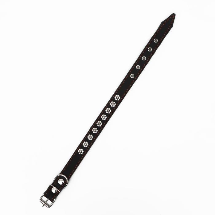 Ошейник кожаный однослойный, безразмерный, 56 х 2.5 см, ОШ 17-44 см, чёрный