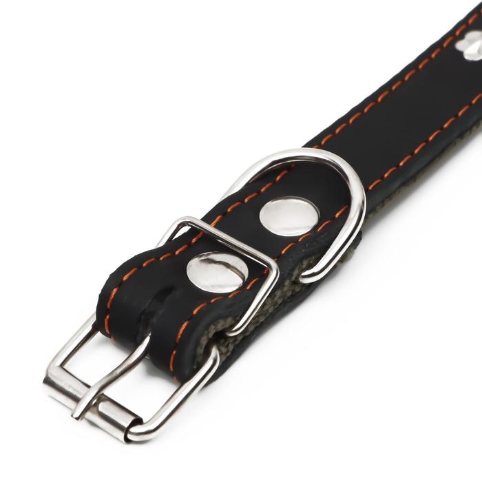 Ошейник комбинированный кожа/брезент, 54 х 2,5 см, украшенный, ОШ 35-45 см, черный