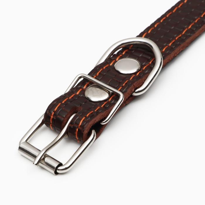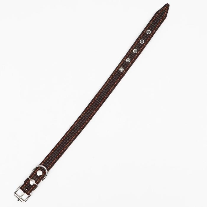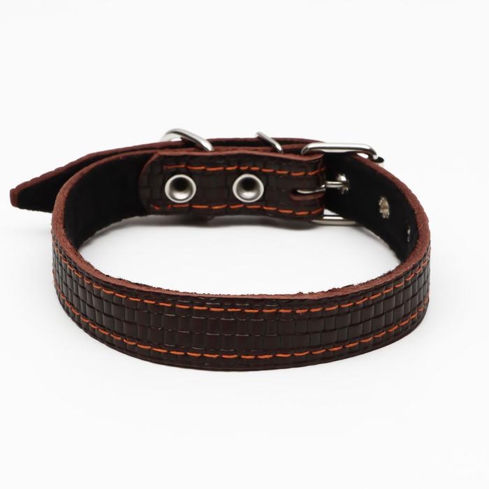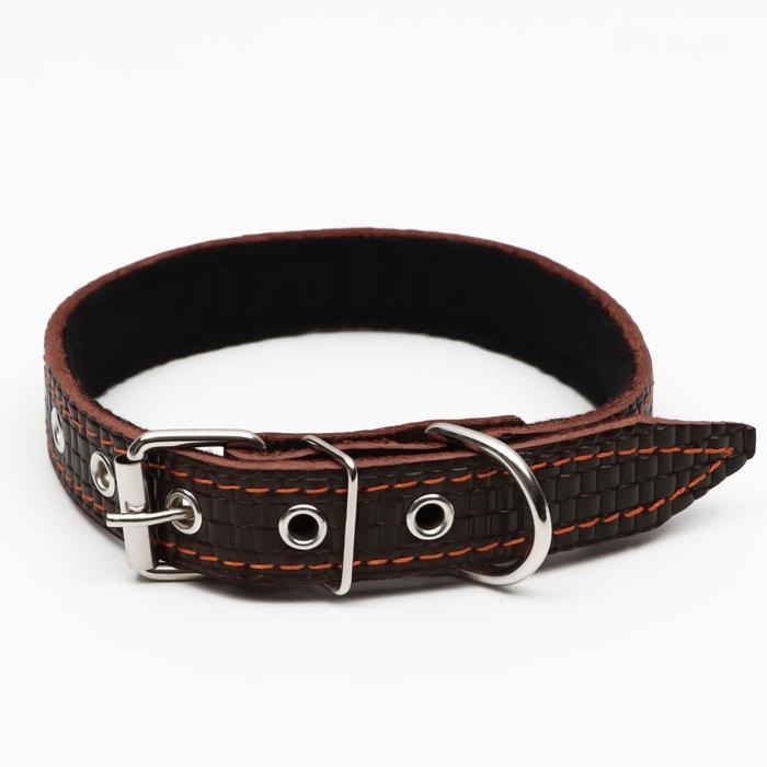 Ошейник кожаный с тиснением на синтепоне, 55 х 2.5 см, ОШ 35-45 см, коричневый