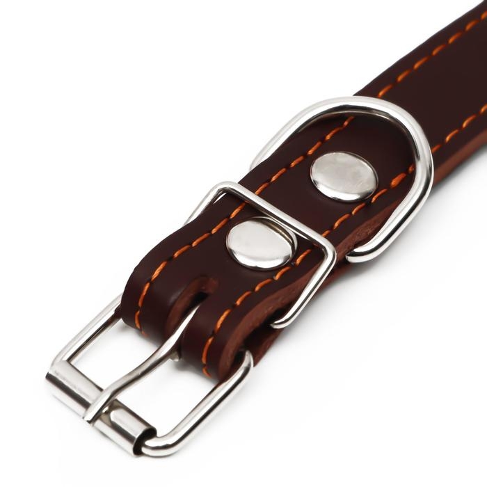 Ошейник кожаный "Строгий шип", 56 х 2.5 см, ОШ 35-45 см, коричневый