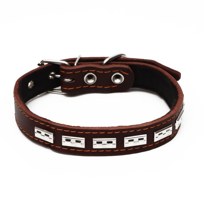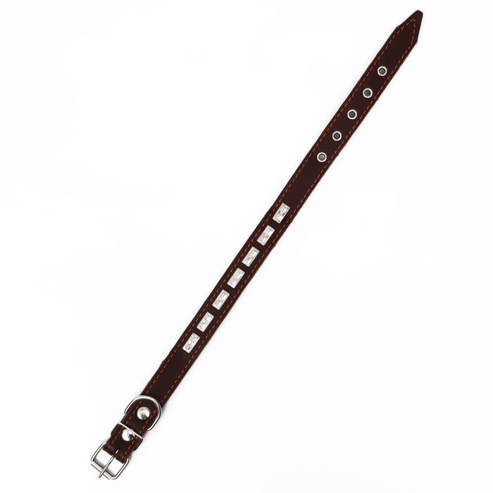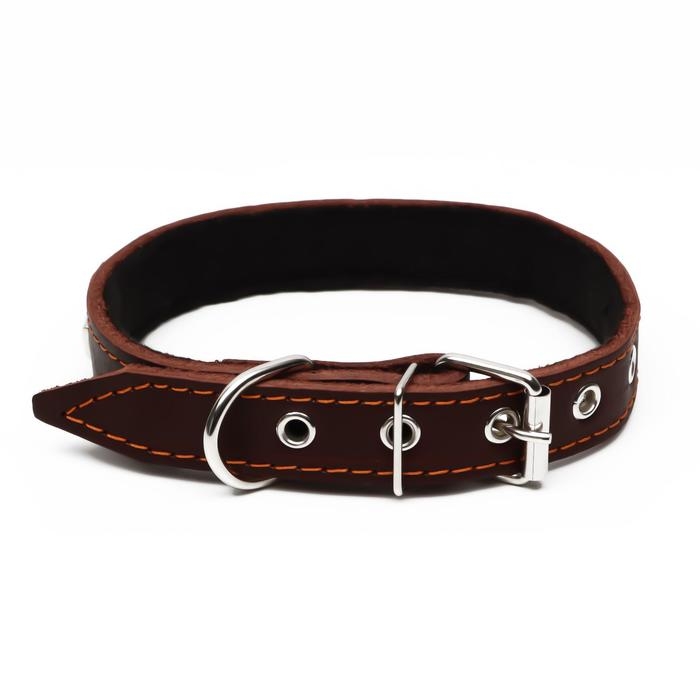 Ошейник кожаный на синтепоне, украшенный, 55 х 2.5 см, ОШ 35-45 см, коричневый
