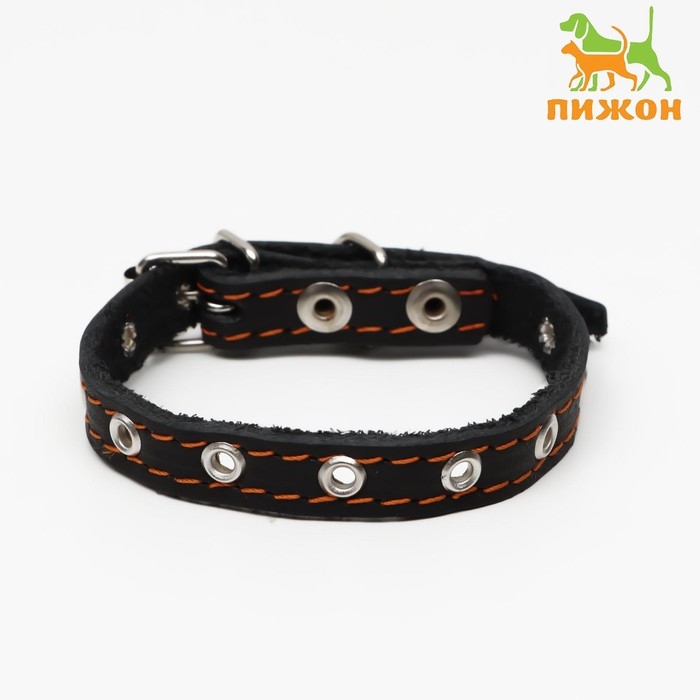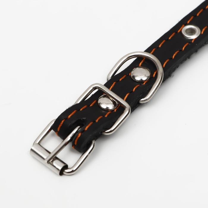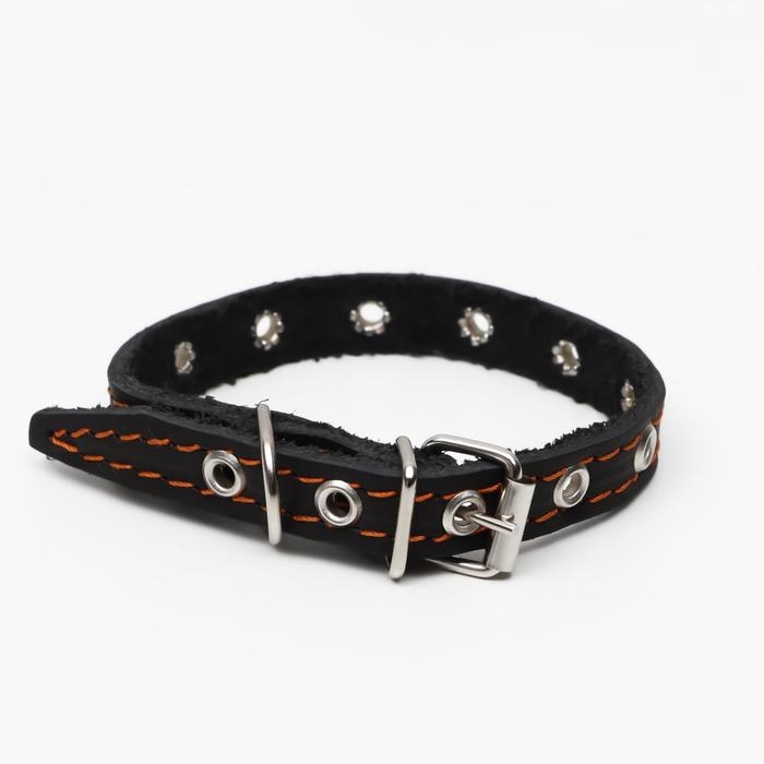 Ошейник кожаный однослойный, безразмерный, 37 х 1.5 см, ОШ 21-32 см, чёрный