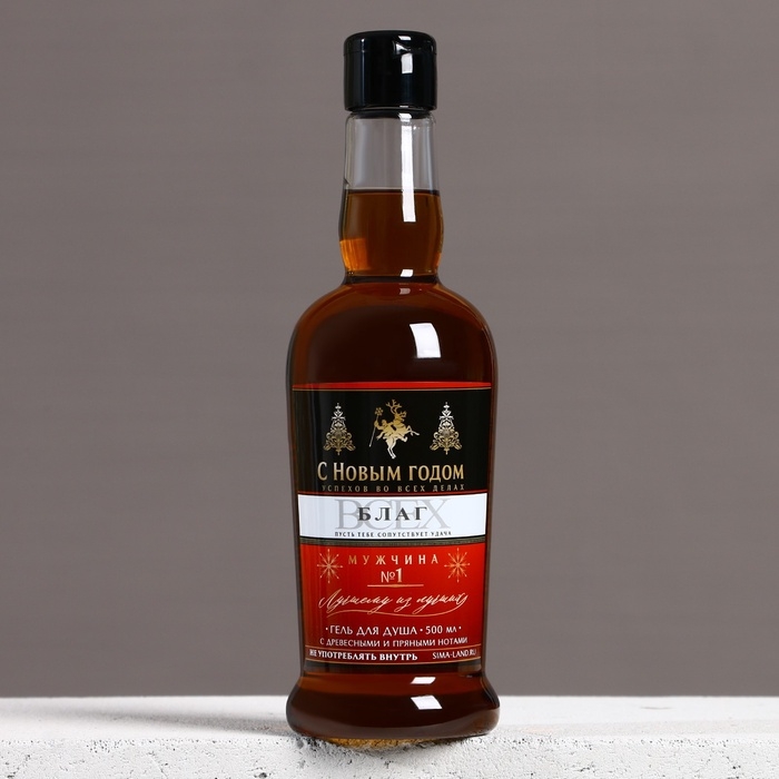 Гель для душа во флаконе коньяка, 500 мл, аромат древесный с пряными нотами, Новый Год
