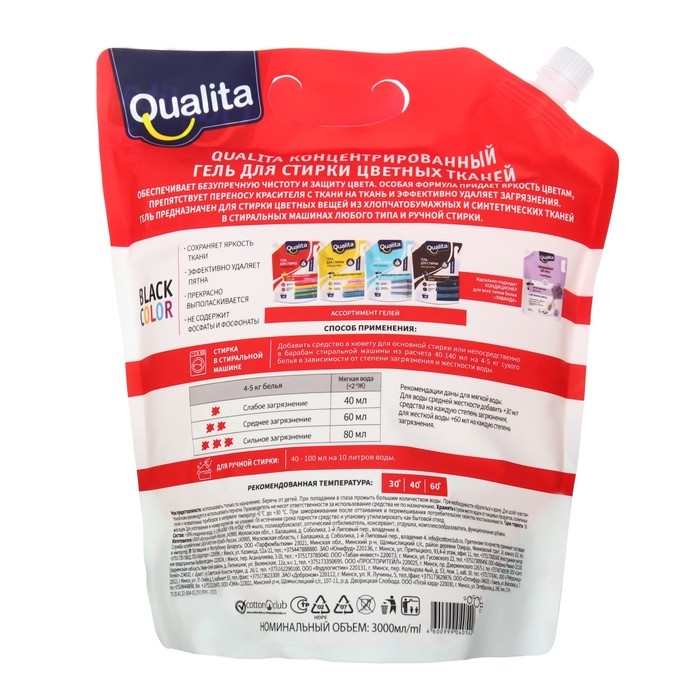 Жидкое средство для стирки Qualita, гель, для цветных тканей, 3 л
