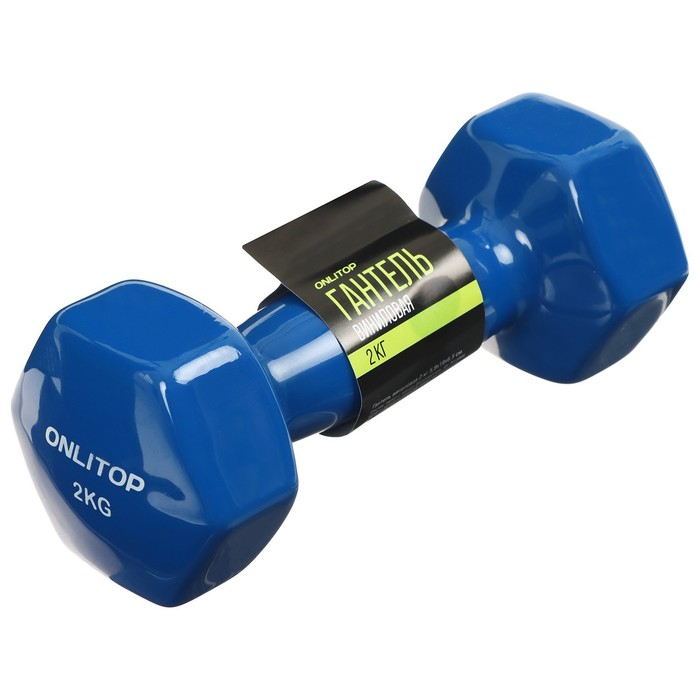 Гантель виниловая ONLYTOP, 2 кг, цвета МИКС