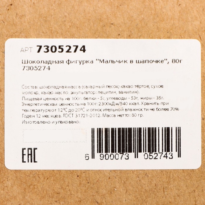 Шоколадная фигурка "Мальчик в шапочке", 80 г