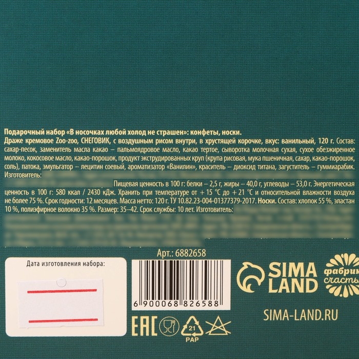 Подарочный набор «В носочках любой холод не страшен» : конфеты, носки
