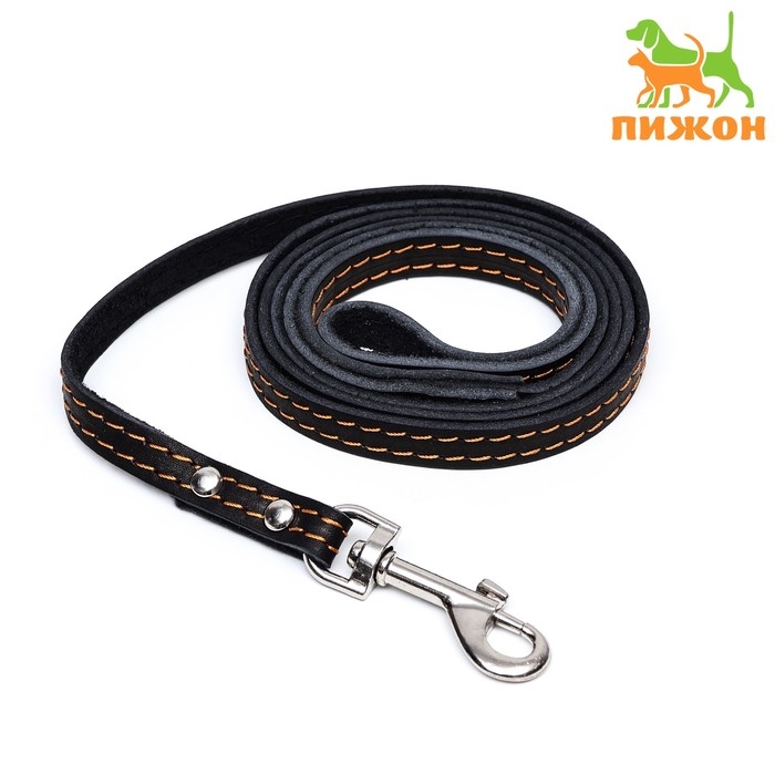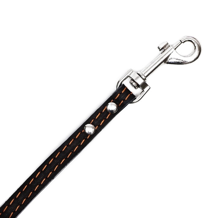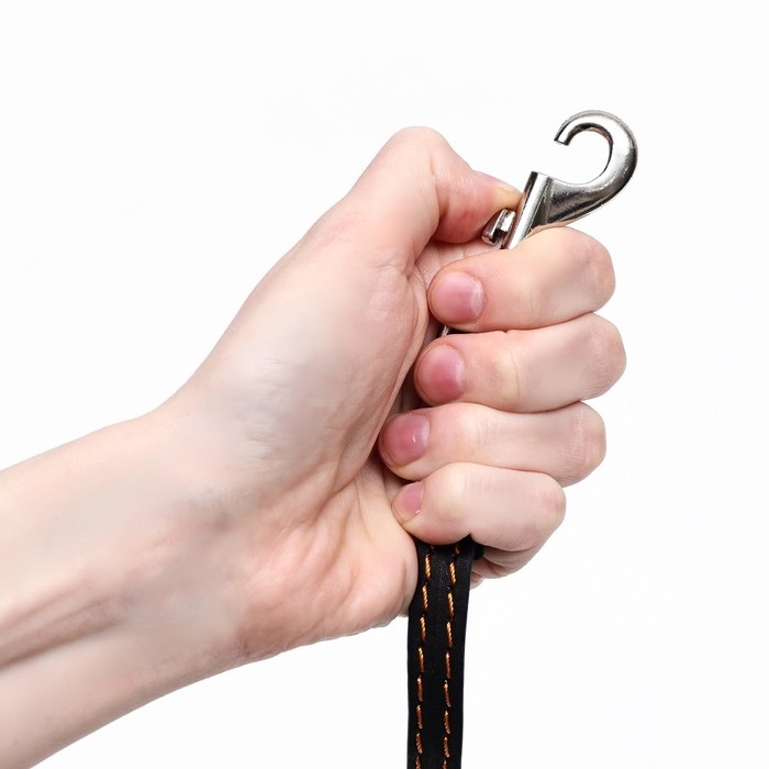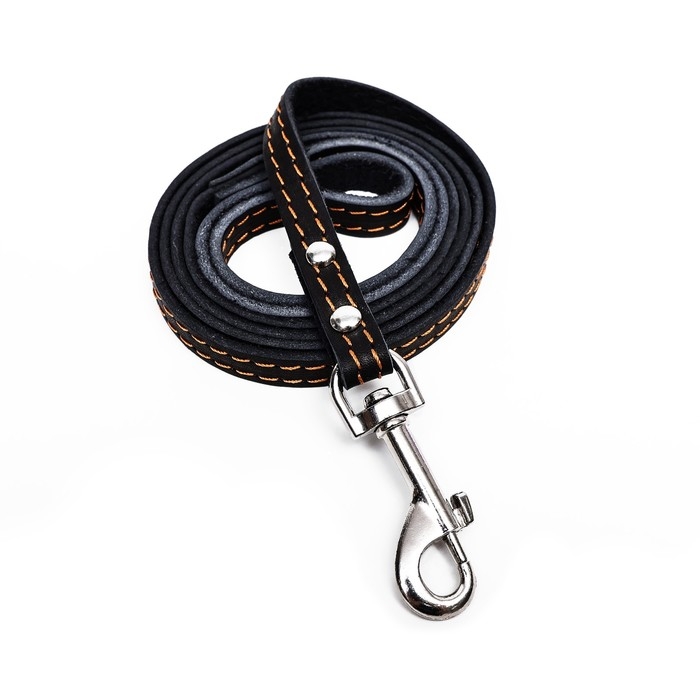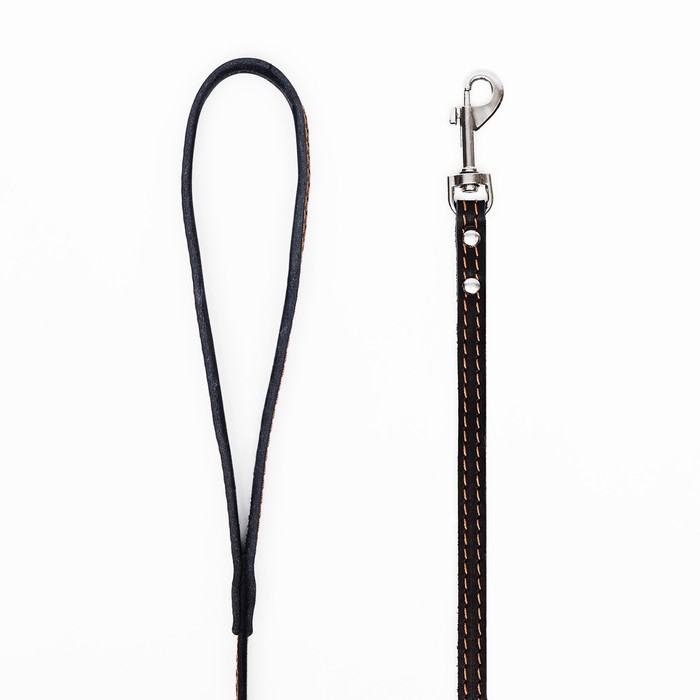 Поводок кожаный однослойный, простроченный, 1.41 м х 1.2 см, черный