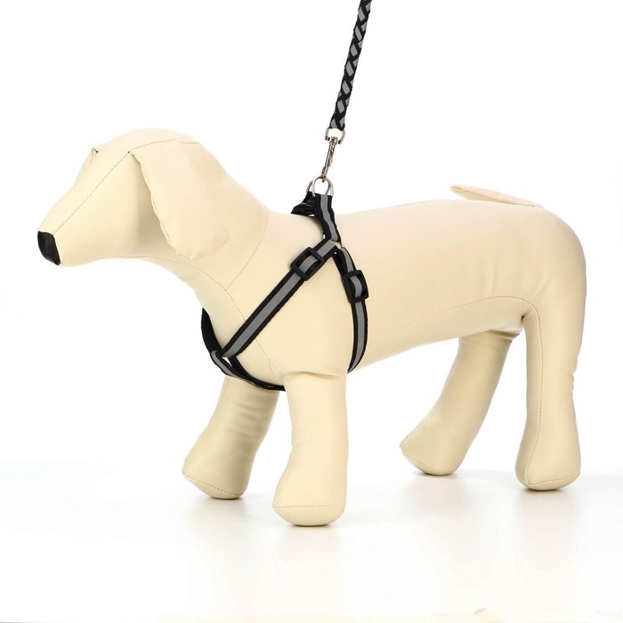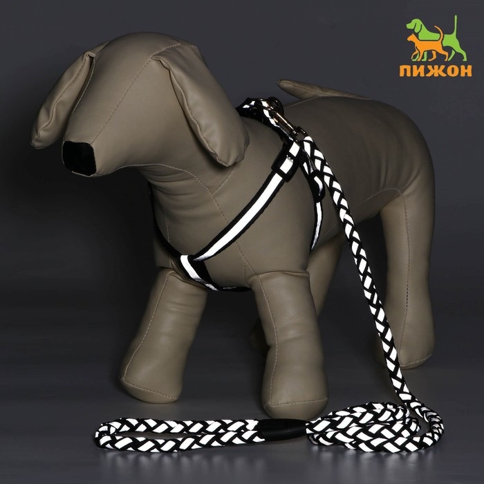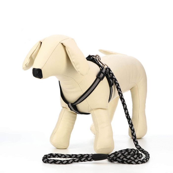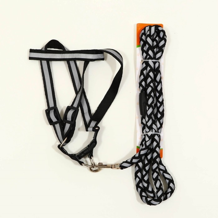 Комплект "Плетенка", флуоресцентный, поводок 115 х 1 см, ОГ 32-48 х 1,5 см, чёрный