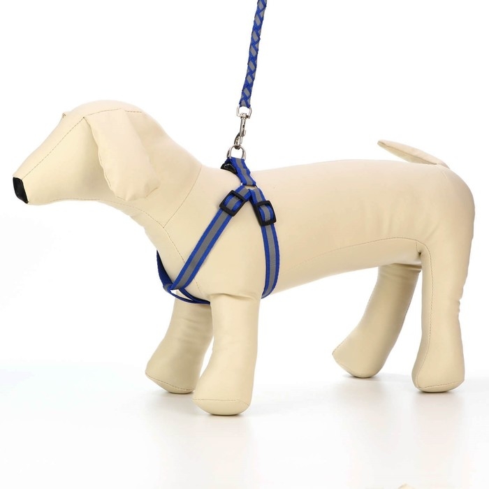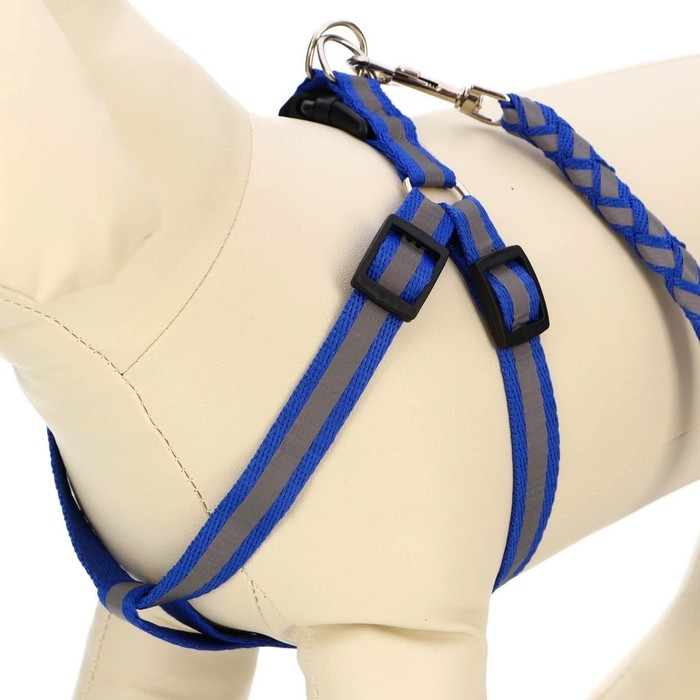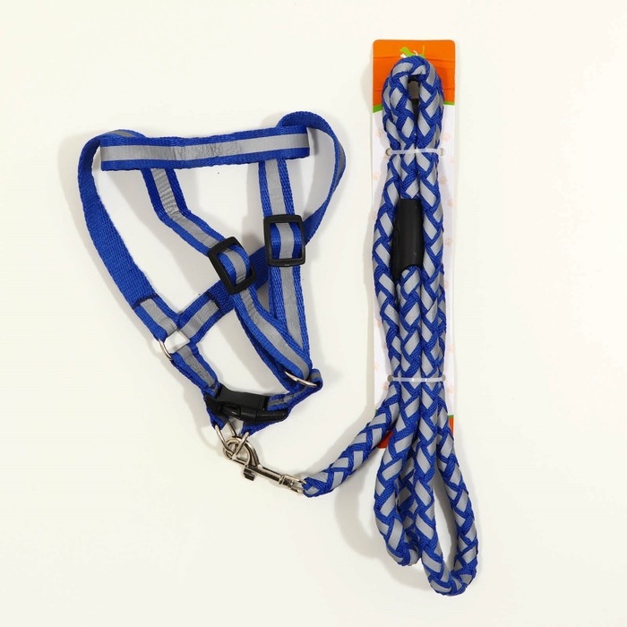 Комплект "Плетенка", флуоресцентный, поводок 115 х 1 см, ОГ 32-48 х 1,5 см, синий