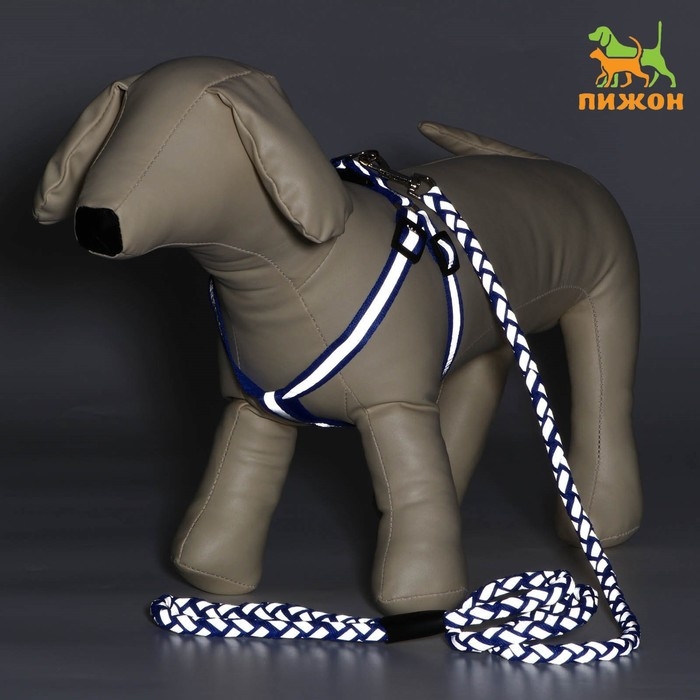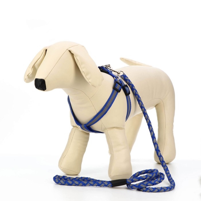 Комплект с мягкой шлейкой "Якорь", размер M, поводок, 120 х 1,5 см, ОГ 34-66 см, синий