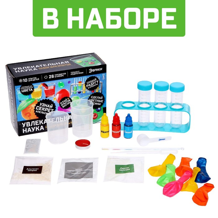 С этим набором для опытов вы проведёте 10 увлекательных экспериментов. Наука — совсем не сложно, а занимательно и весело, если изучать её правильно!