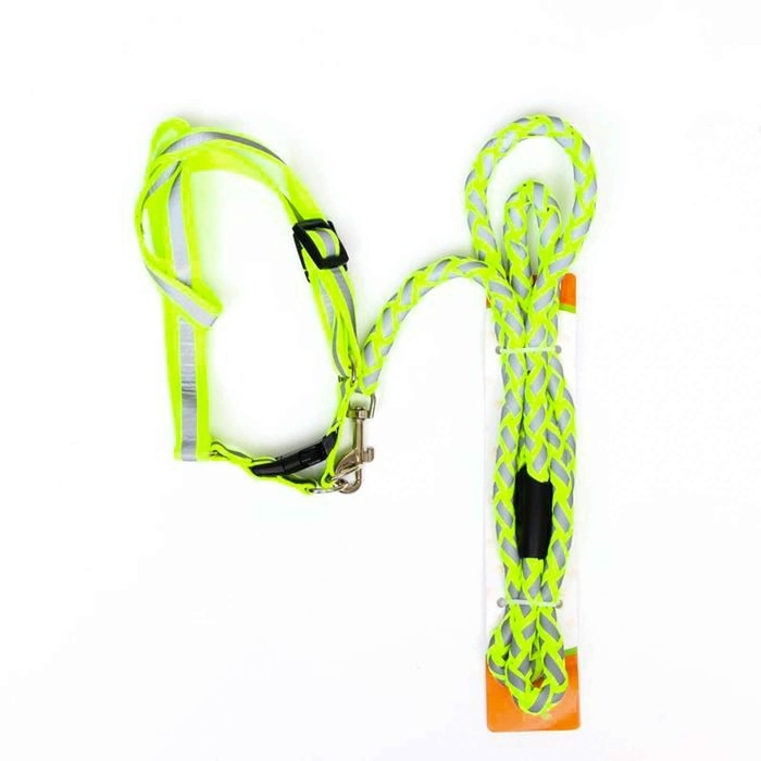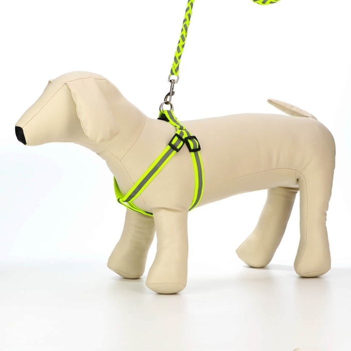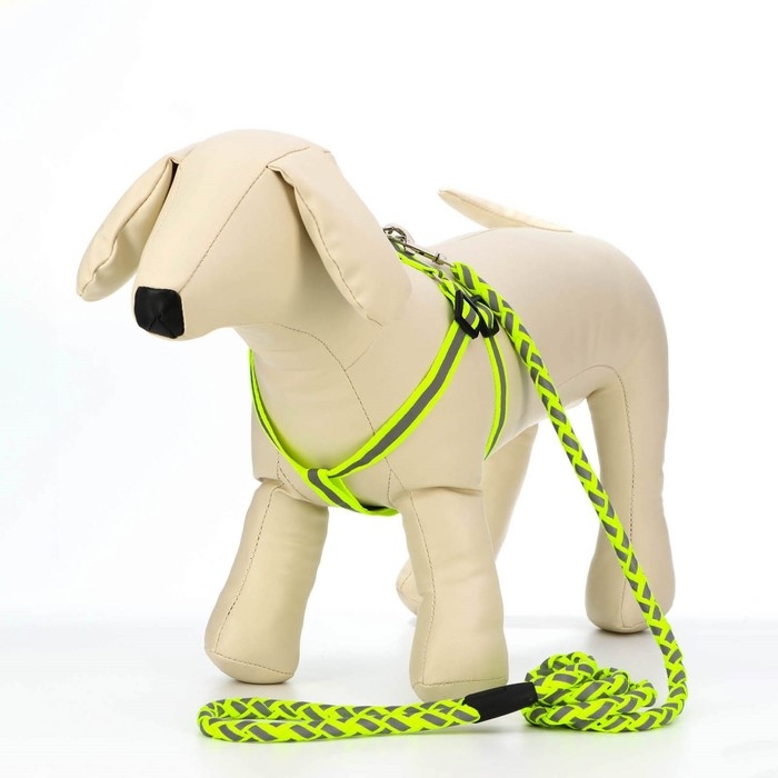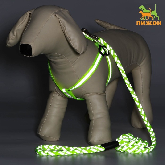 Комплект "Плетенка", флуоресцентный, шлейка 32-48 см, поводок 115 х 1 см, зелёный