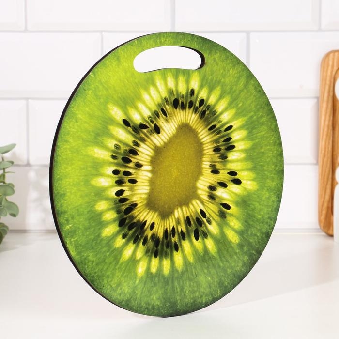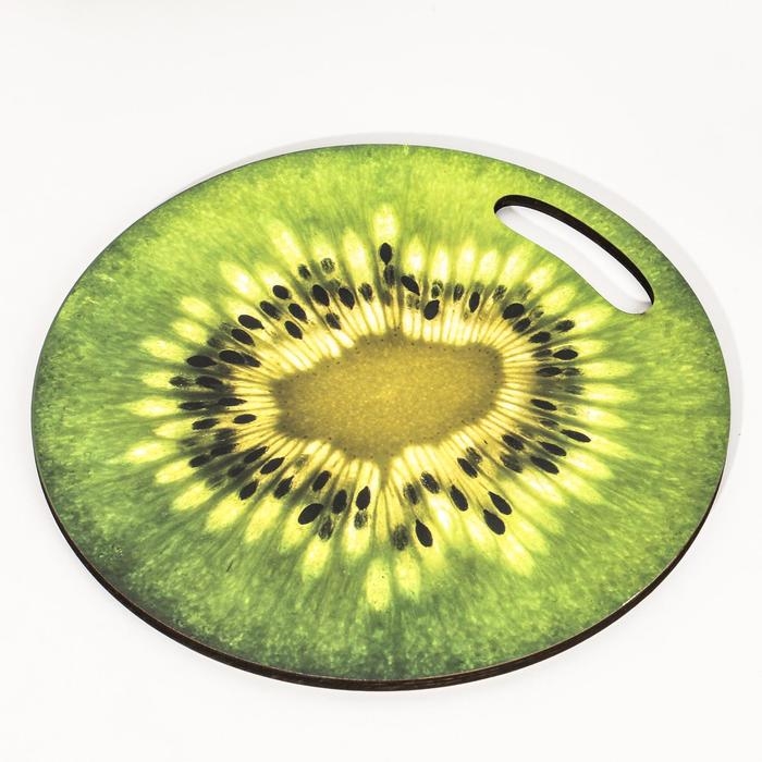 Доска разделочная и сервировочная круглая кухонная "Киви в разрезе", 25,5 см