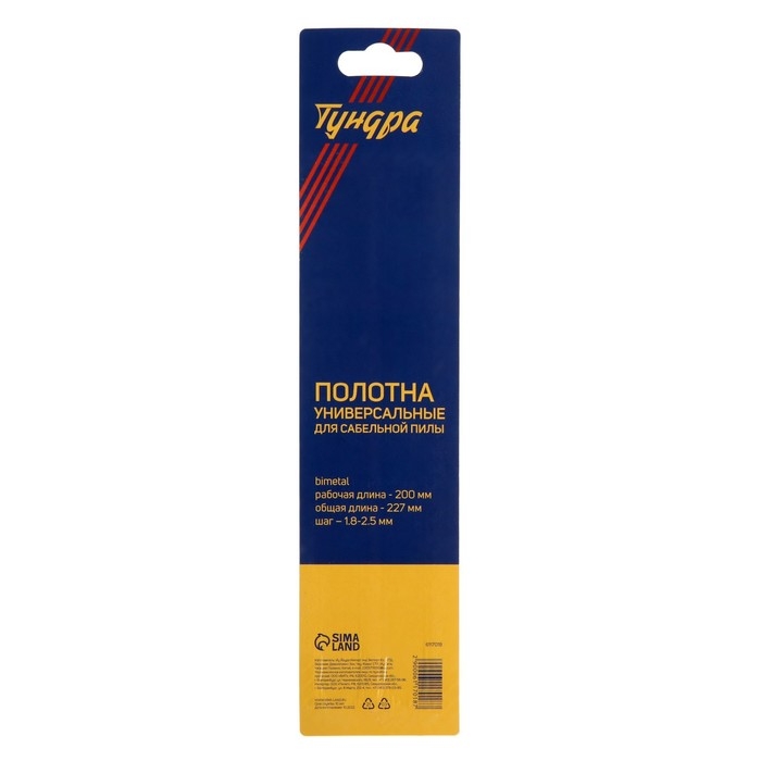 Полотна универсальные для сабельной пилы ТУНДРА, Bimetal, 200/227 х 1.8-2.5 мм, 2 шт.