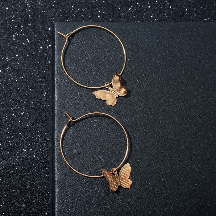 Серьги-кольца «Бабочки на кольце», цвет золото, d=3 см