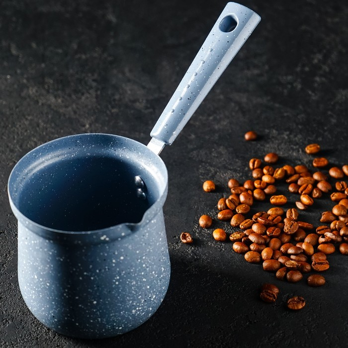 Турка Доляна «Мрамор грэй», 450 мл, d=9 см, 20×9×14 см, пластиковая ручка, антипригарное покрытие, индукция, цвет серый