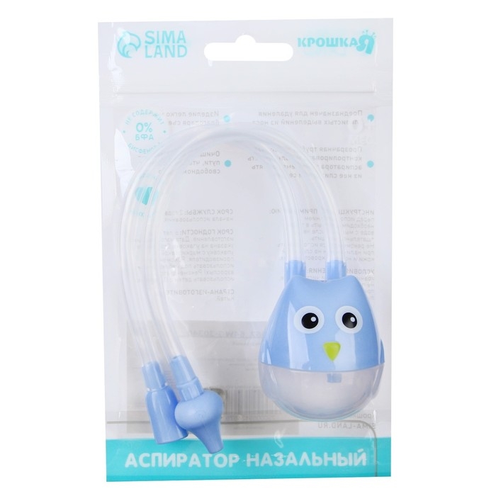Аспиратор назальный с отводной трубкой «Совушка», цвет голубой
