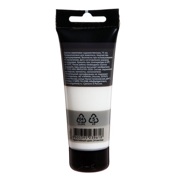 Новая акриловая краска ГАММА "Студия" предназначена для художественно-живописных и декоративно-прикладных работ. Цвет — белила титановые. Объём пластиковой тубы — 75 мл.