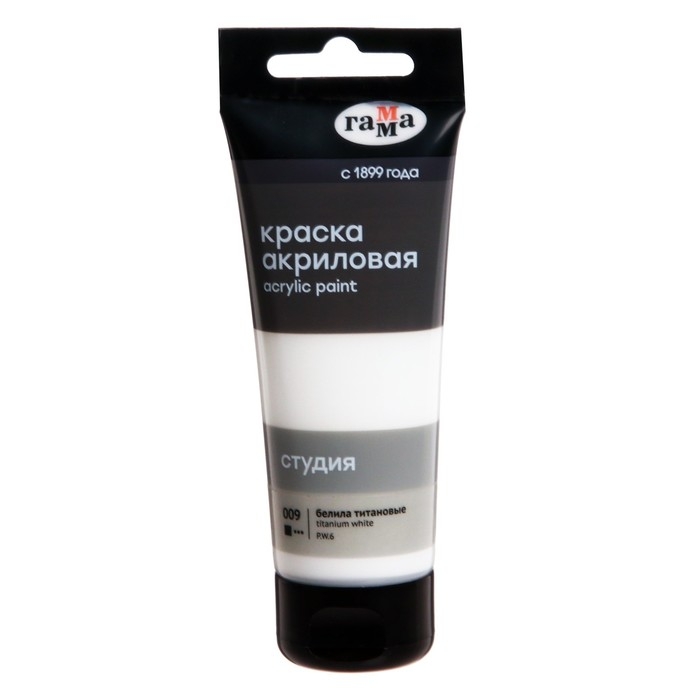 Краска акриловая художественная туба 75 мл, Гамма "Студия" №009 белила титановые