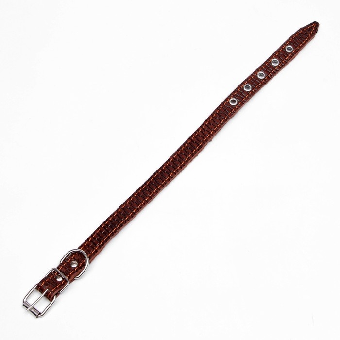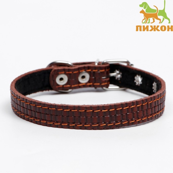 Ошейник кожаный с тиснением на синтепоне, 46 х 2 см, ОШ 25-35 см, коричневый
