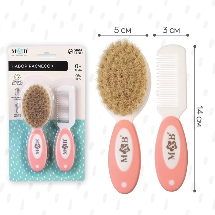 Набор детский для ухода за волосами: расческа и щетка с натуральной щетиной , цвет белый/розовый