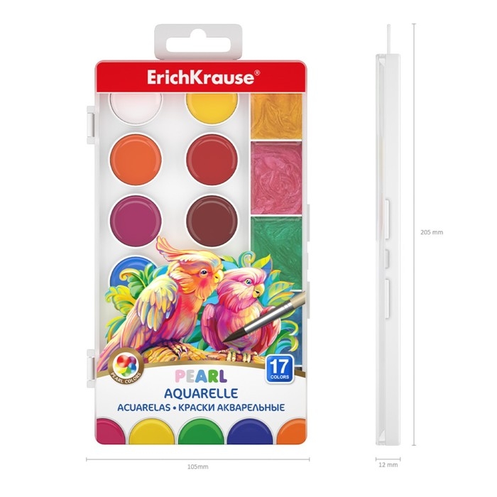 Акварель 17 цветов ErichKrause ArtBerry Pearl, с УФ-защитой, с увеличенными кюветами XXL, пластик, европодвес, без кисти